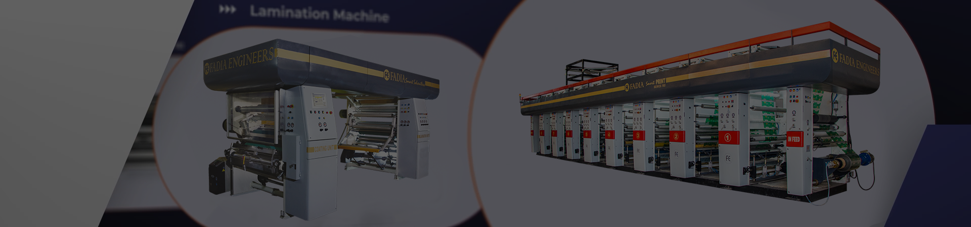 Over the 20 Years Experiance & Knowledge of Packaging Industry. Fadia Engineers is Leading Rotogravure Printing Machine, Lamination Machine, & Slitting Machine Manufacture In India.